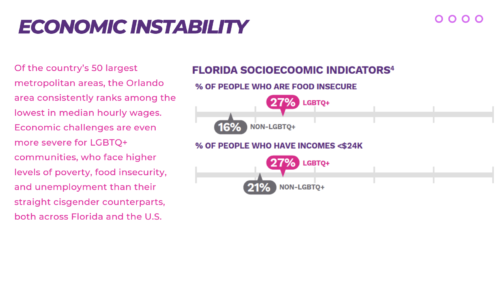 Orlando has some of the lowest median hourly wages in the country, and LGBTQ+ communities in Florida and across the country are more likely to have low incomes and face food insecurity.